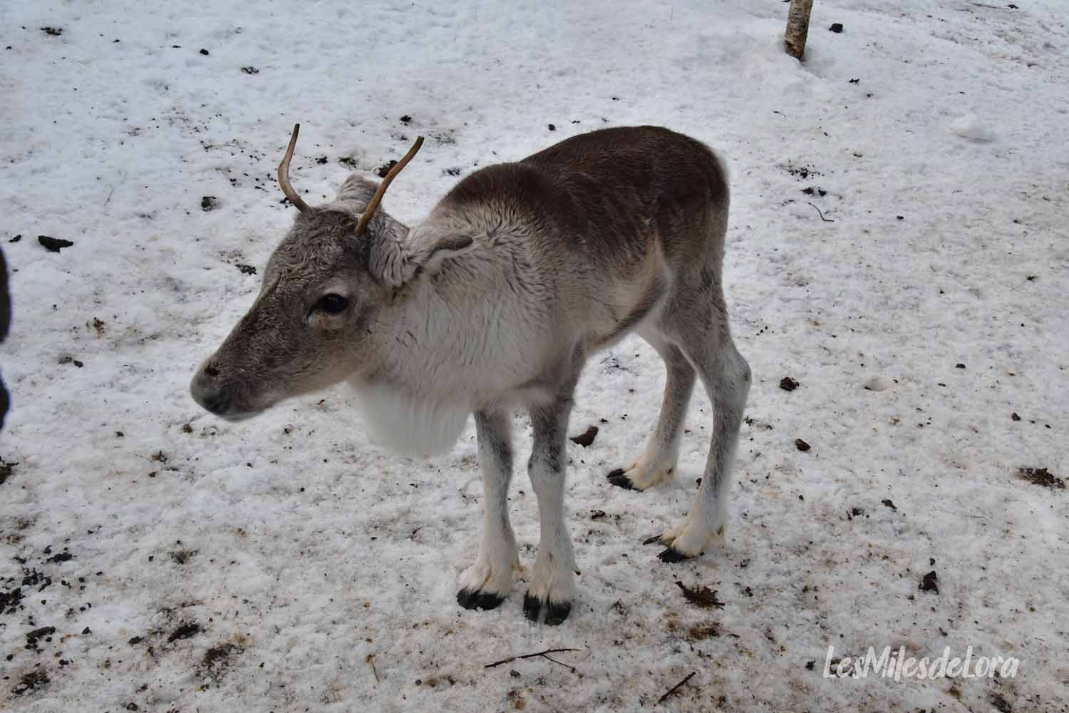 Passons à l’extérieur maintenant. J’avais vu qu’il y avait plein d’installations mais je n’en ai trouvé aucune accessible aujourd’hui en dehors de l’enclos à rennes. Évidemment, vu que ce sont mes animaux préférés, je vais les trouver avec grand plaisir. Vous pouvez acheter un sac de lichen au café pour venir les nourrir, mais vu que des gens étaient en train de le faire, j’ai pu profiter de leur présence aussi.