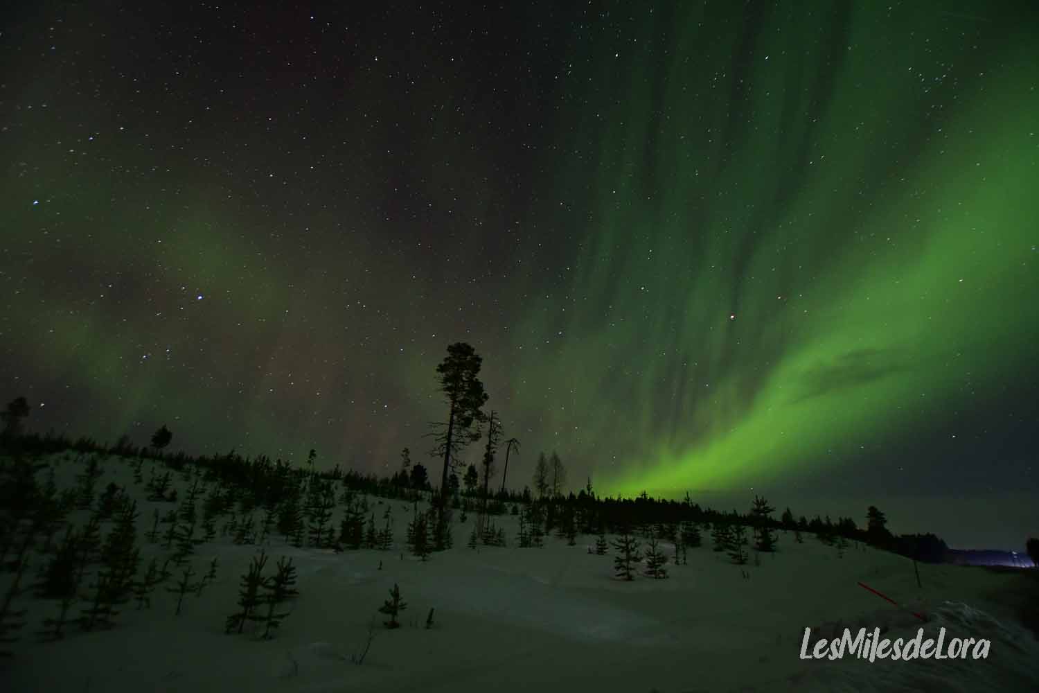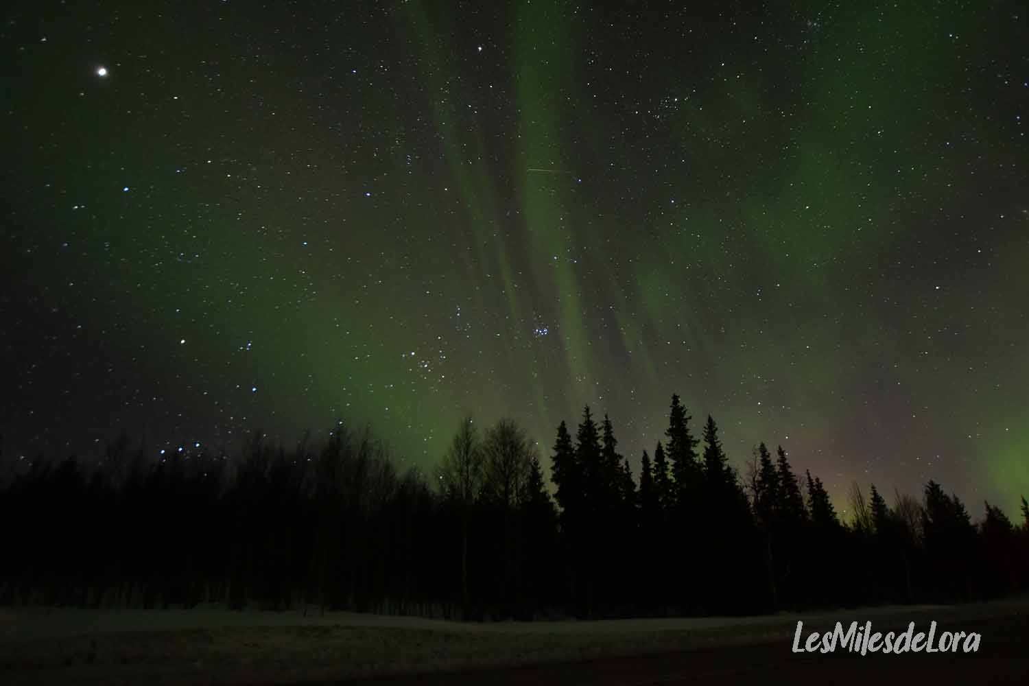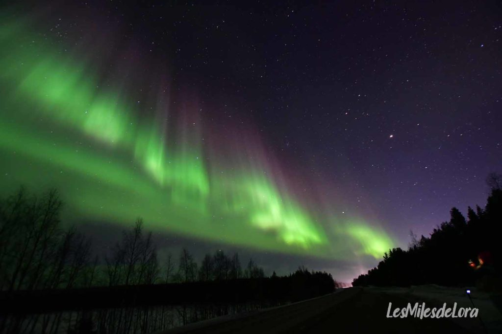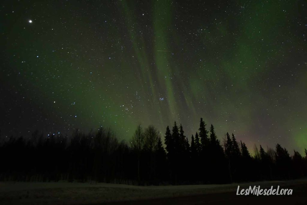 Il est 00H30 (heure de Suède), l’activité a pratiquement disparu, il est l’heure pour nous de faire demi-tour et de rentrer à Levi. La route sera longue, plus de 3H30, avec un arrêt à la station essence, et un changement d’heure aussitôt la frontière passée.