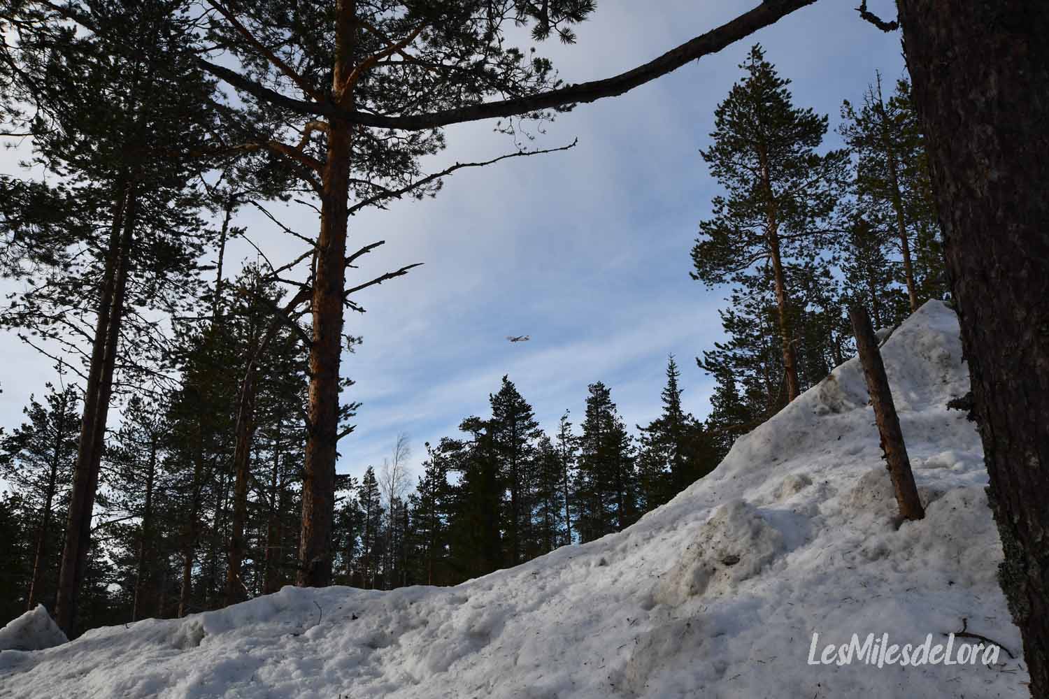Avec la neige et le soleil, la réverbération est gênante. À tel point que je dois porter mes lunettes de soleil, ce qui ne m’était vraiment jamais arrivé en Laponie avant, haha.